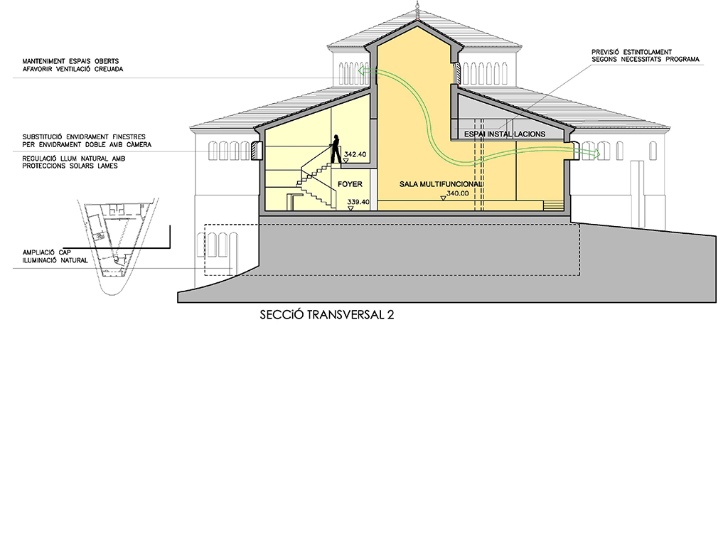 Rehabilitación Mercat Vallvidrera, Barcelona, 2010. Concurso (con R.Fiestas y A.Gual). 2n premio.